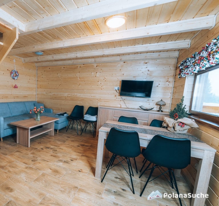 Pragniemy Was zaprosić do odkrycia niepowtarzalnego uroku naturalnych, drewnianych wnętrz naszych domków. Każdy z nich został zaprojektowany z dbałością o szczegóły, abyście mogli poczuć się jak w przytulnym górskim gnieździe. Wykorzystaliśmy drewno jako główny materiał wykończeniowy, co nadaje naszym domkom ciepły i autentyczny charakter. Drewniane ściany i sufit sprawiają, że atmosfera jest przyjazna i sprzyja relaksowi po intensywnym dniu na stoku.
